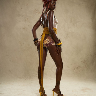 La seda es un textil usado con frequencia por la marca, y con The Resort no fue la excepción. Tops con apliques y corsés en tonos de ensueño como el violeta azulado y verde suntuoso, botas que encajarían perfectamente con el guardarropas de Elizabeth Swann (para quienes no la ubican, es el audaz personaje interpretado por Keira Knightley en Piratas del Caribe), y batas a medio camino entre una sirena sensual y la reina de los bandidos de ultramar completaron la sensación de lujo que la colección quiso evocar.